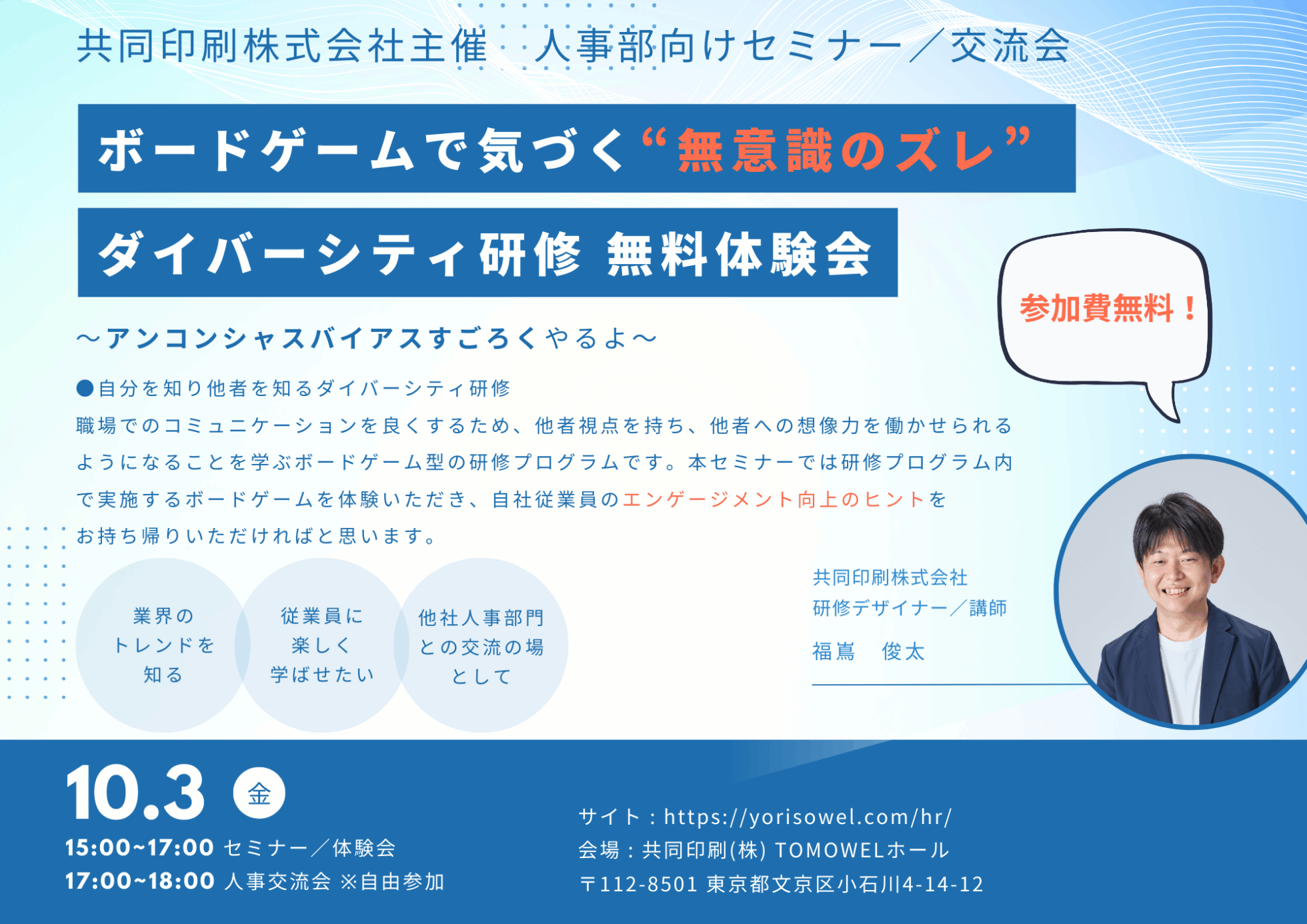 【人事部様向け】10/3(金)開催 ダイバーシティ研修 無料体験会のご案内
