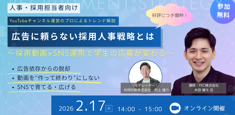 【セミナー開催】2026年2月17日(火)14時~『広告に頼らない採用人事戦略とは〜採用動画×SNS運用で応募が変わる〜』